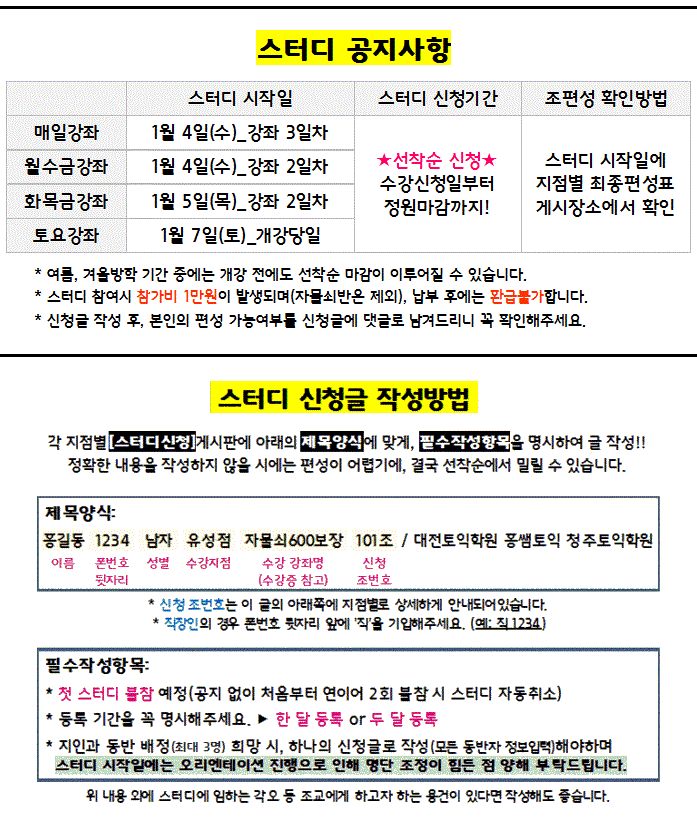 대전 1~2월 스터디 신청안내