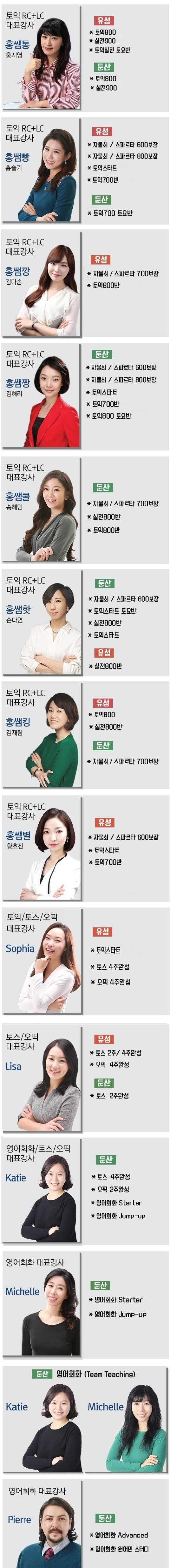 강사별 과목 안내
