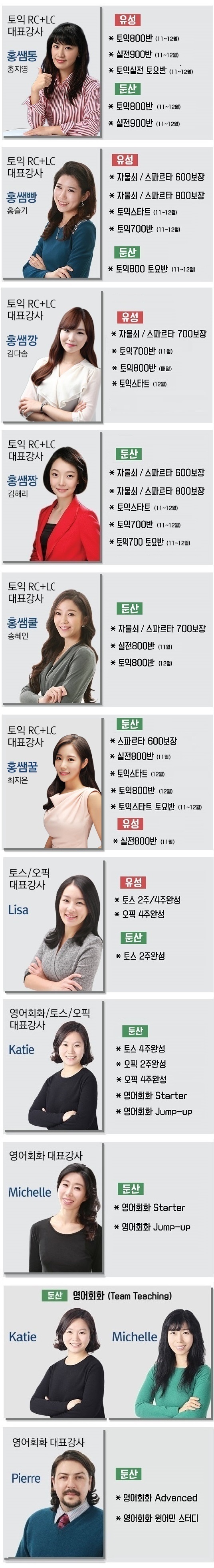 강사별 과목 안내