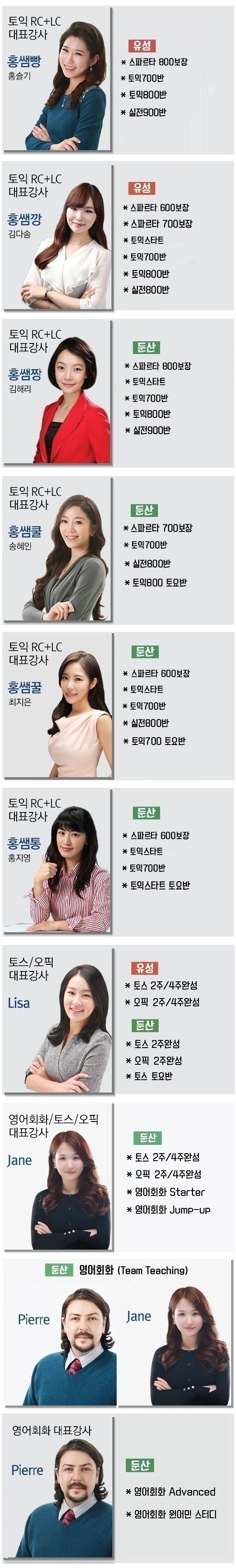 강사별 과목 안내