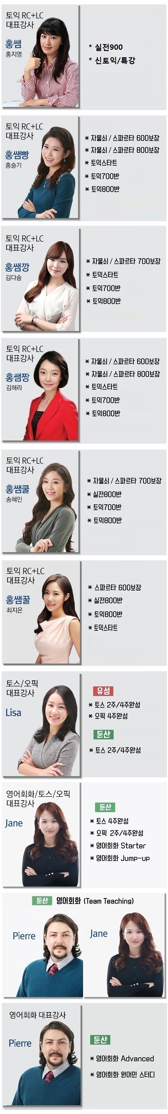 강사별 과목 안내
