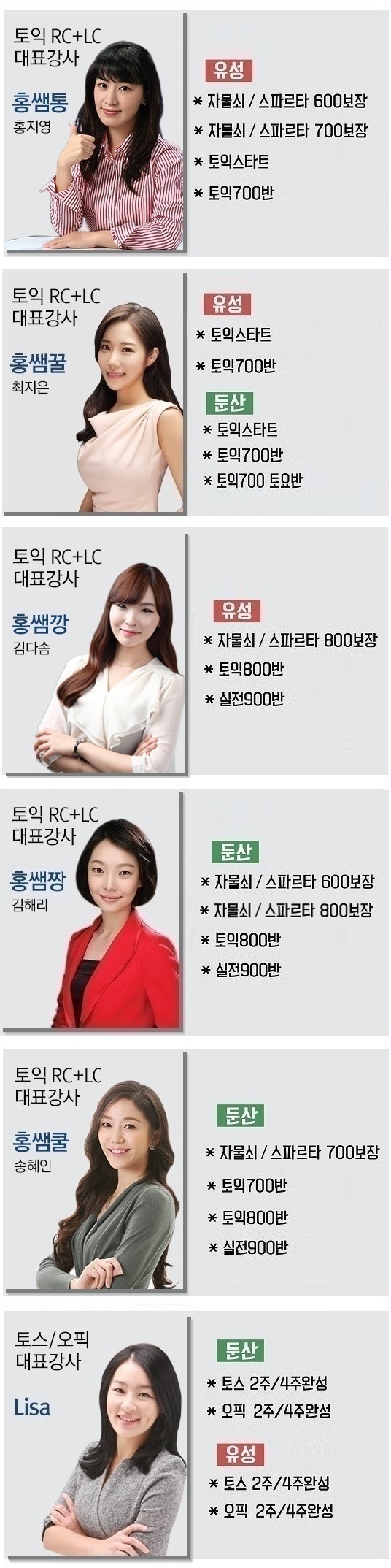 강사별 과목 안내