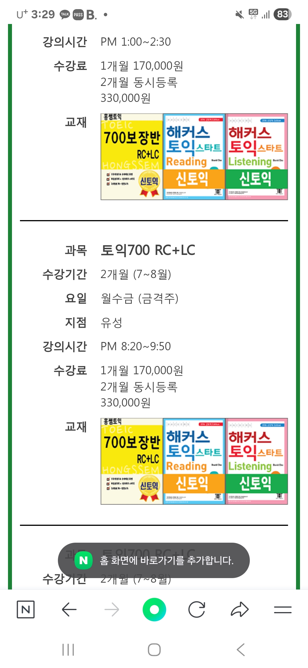 해당 수업 수강 예정인데 모의 토익만 본 정도+영어 공부 제대로 한지 2년 된 상태면 수강하는 데 큰 어려움이 있을까요? 빠르게 700이상을 취득해야해서 문의드립니다. 그리고 혹시 금요일 격주가 7월 첫주 금요일인 7월 4일부터 해서 18일, 이런식으로 진행되는 걸까요?