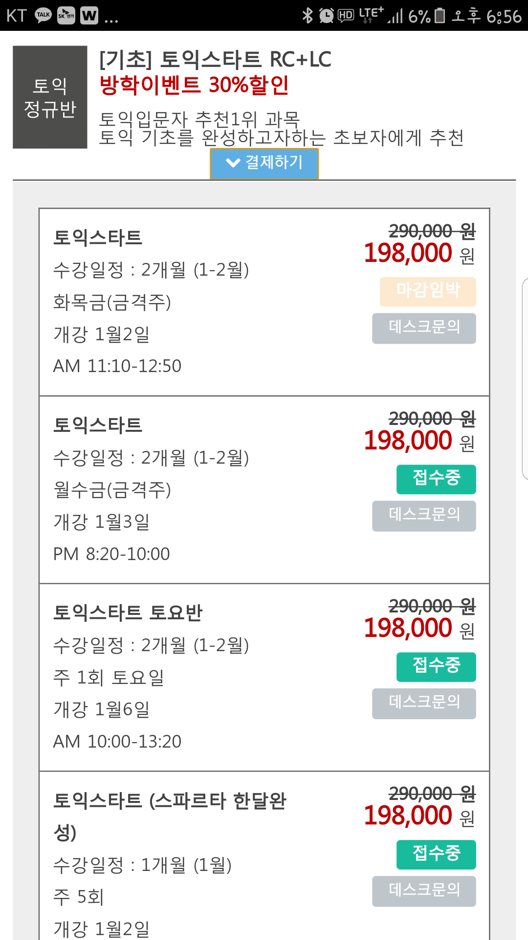 이번에 토익스타트를 2월달부터 2개월 신청으로 하려고하는데 찾아보니 198000원하던데 그게 맞나요?? 그리고 직장인환급도 가능한지 알고싶습니다
