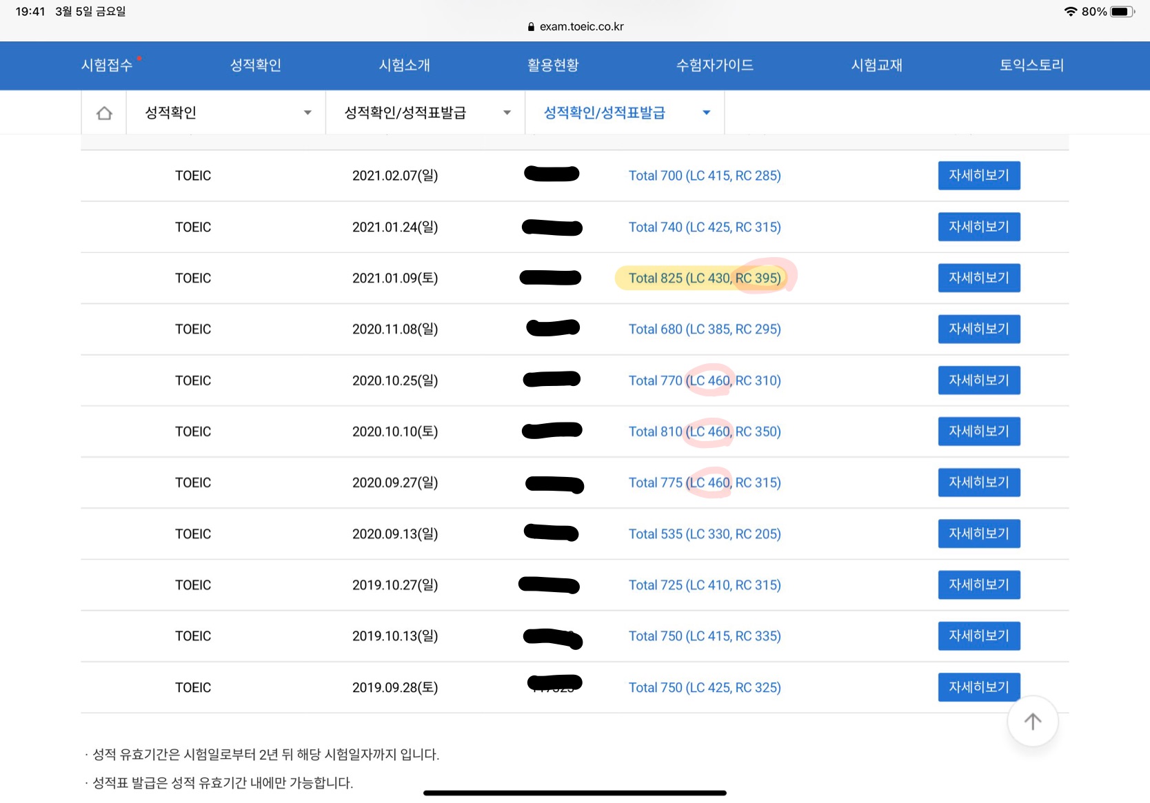 제 점수입니다