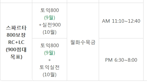 그리고 실전900은 오전수업 토익실전은 오후수업이라는 뜻인가요?