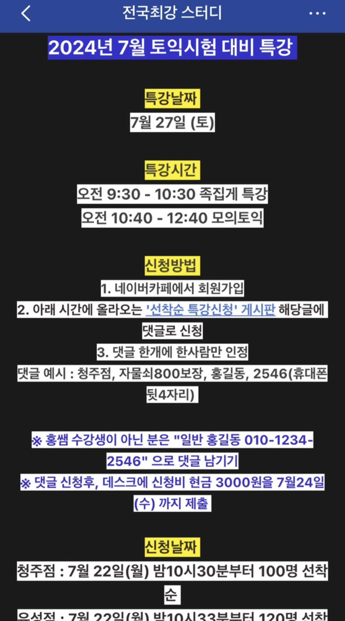 학원수강생도 모의토익 볼려면 3000원을 내야하는건가요?