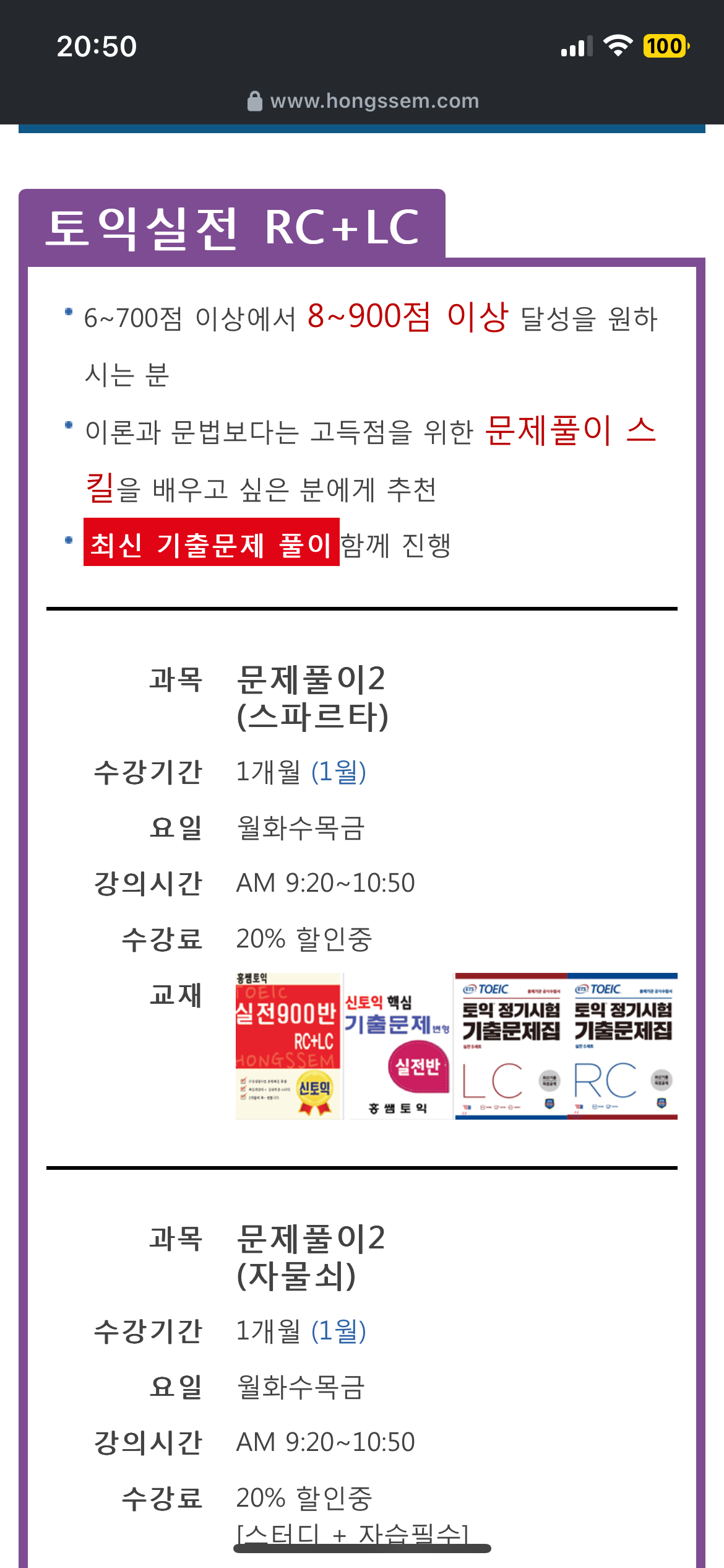 토익 850+를 목표로하고 수업신청을 하려고 하는데