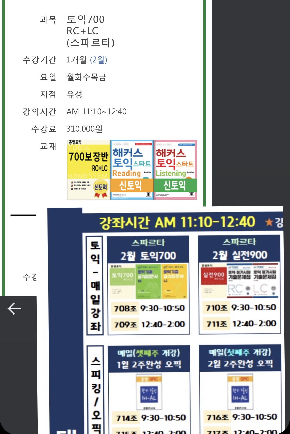 유성점 2월 수강 교재 질문